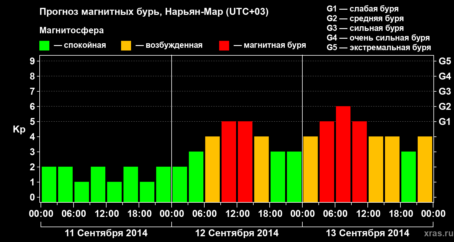 Прогноз магнитных бурь в Нарьян-Маре на 11 сентября 2014 года
