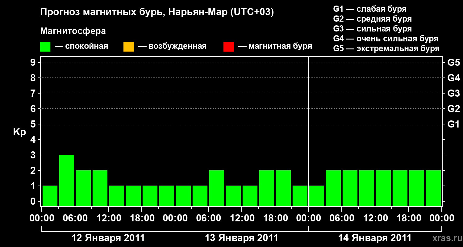 Прогноз магнитных бурь в Нарьян-Маре — 12 января 2011 года