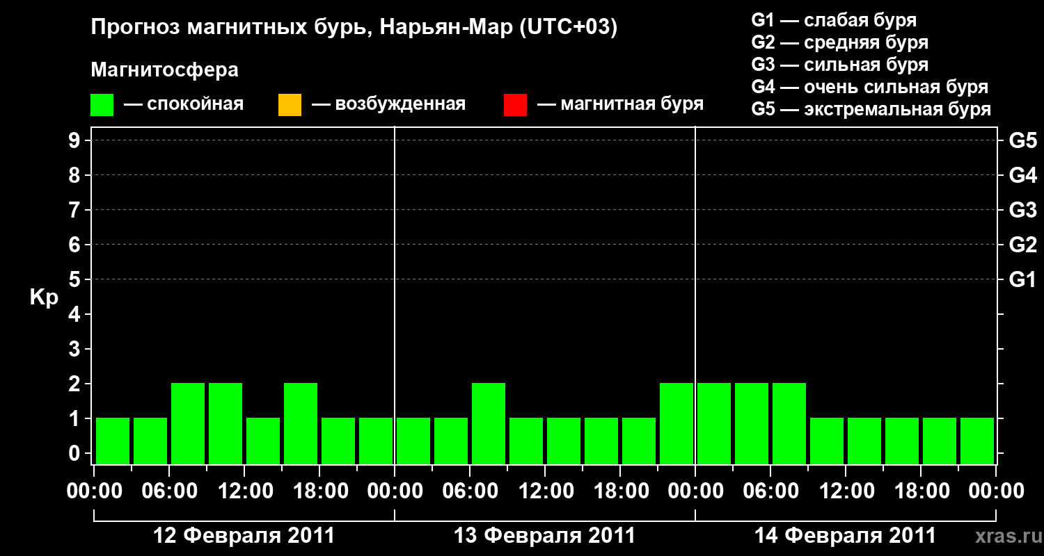 Прогноз магнитных бурь в Нарьян-Маре на 12 февраля 2011 года