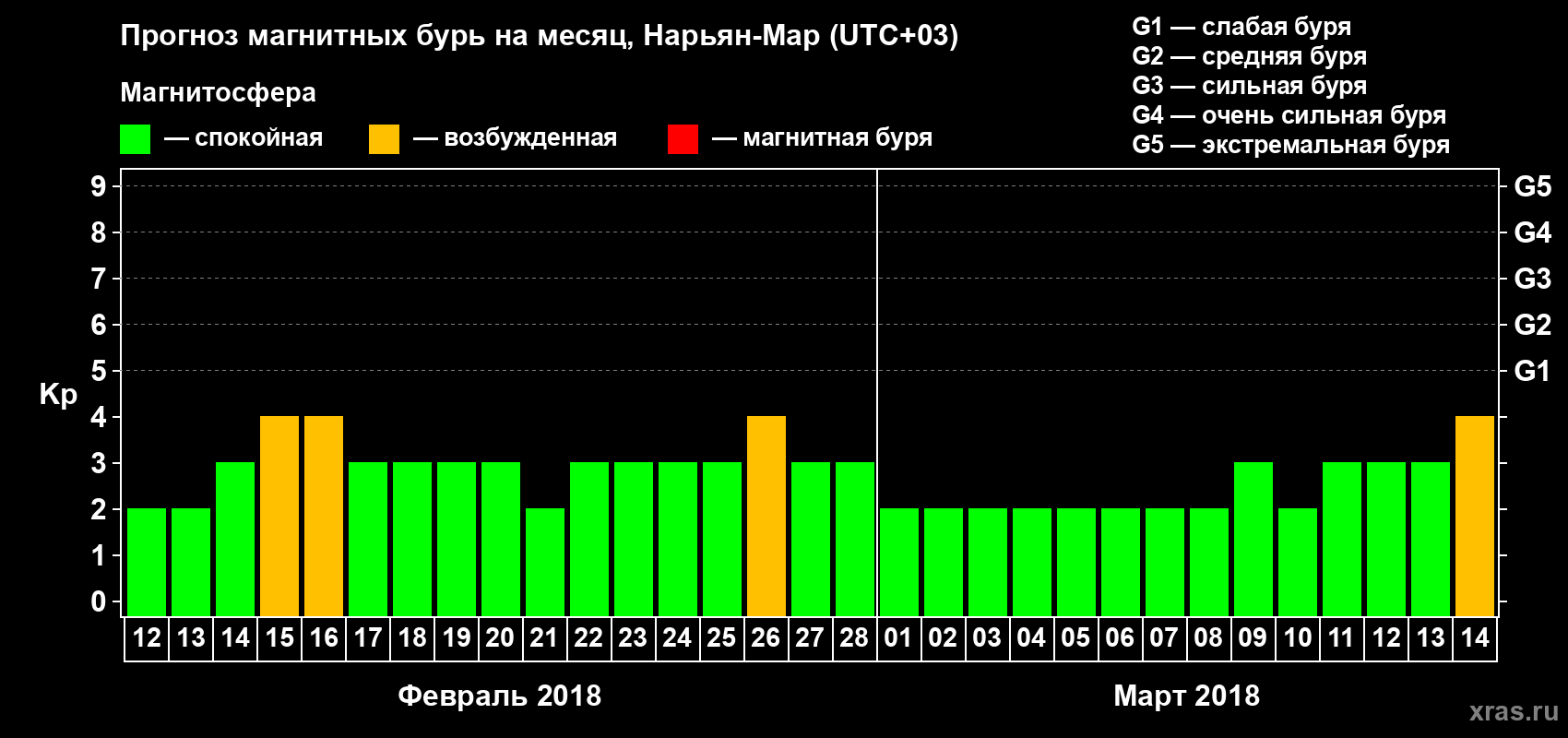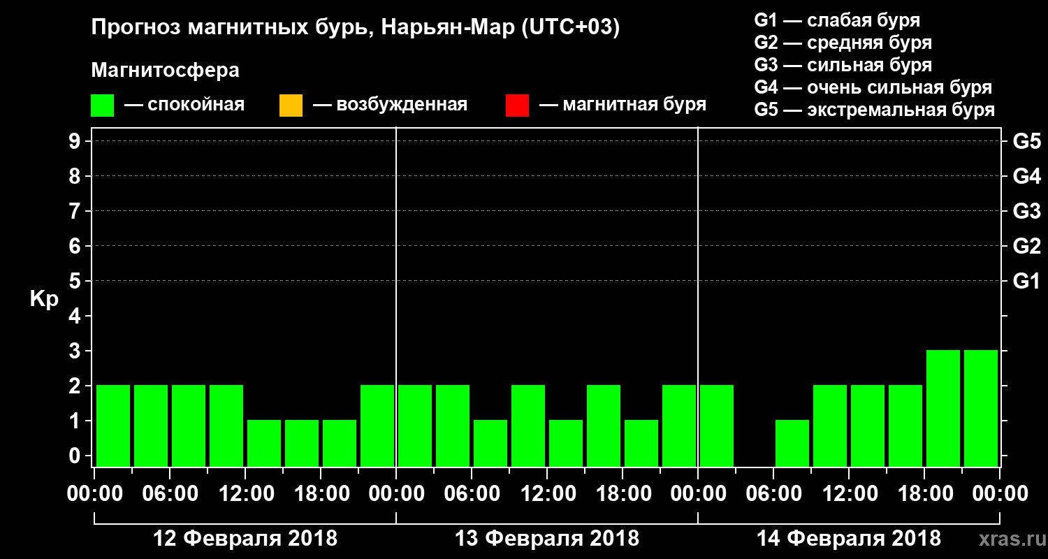 Прогноз магнитных бурь в Нарьян-Маре на 12 февраля 2018 года