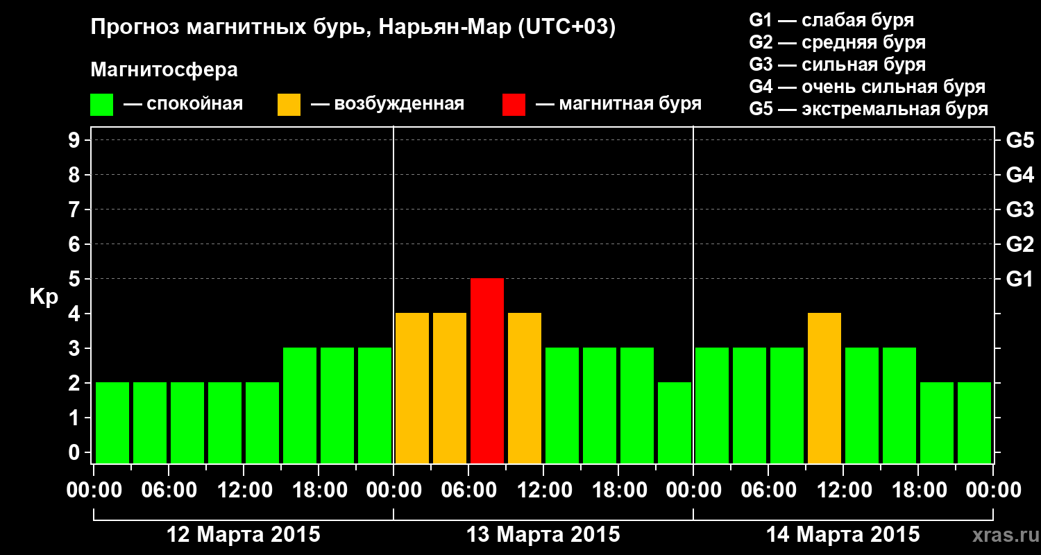 Прогноз магнитных бурь в Нарьян-Маре на 12 марта 2015 года