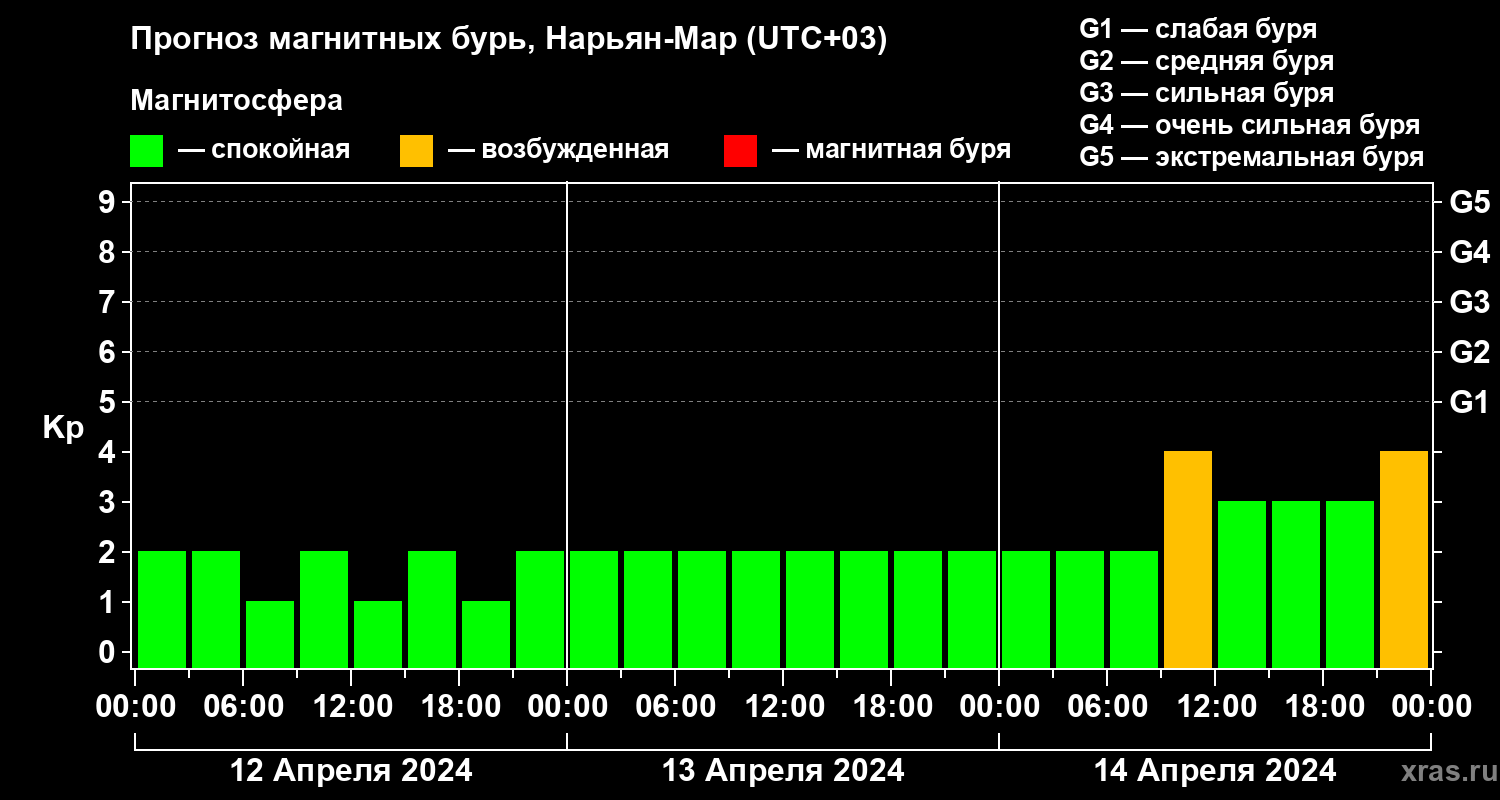 Прогноз магнитных бурь в Нарьян-Маре на 12 апреля 2024 года