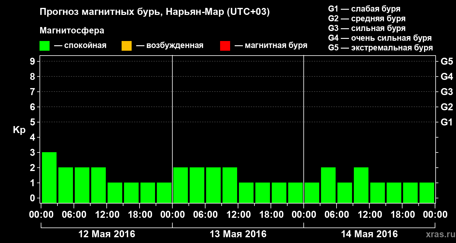 Прогноз магнитных бурь в Нарьян-Маре на 12 мая 2016 года