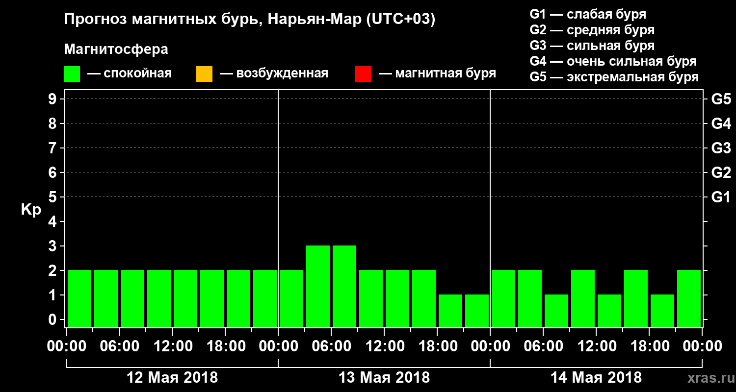 Прогноз магнитных бурь в Нарьян-Маре на 12 мая 2018 года