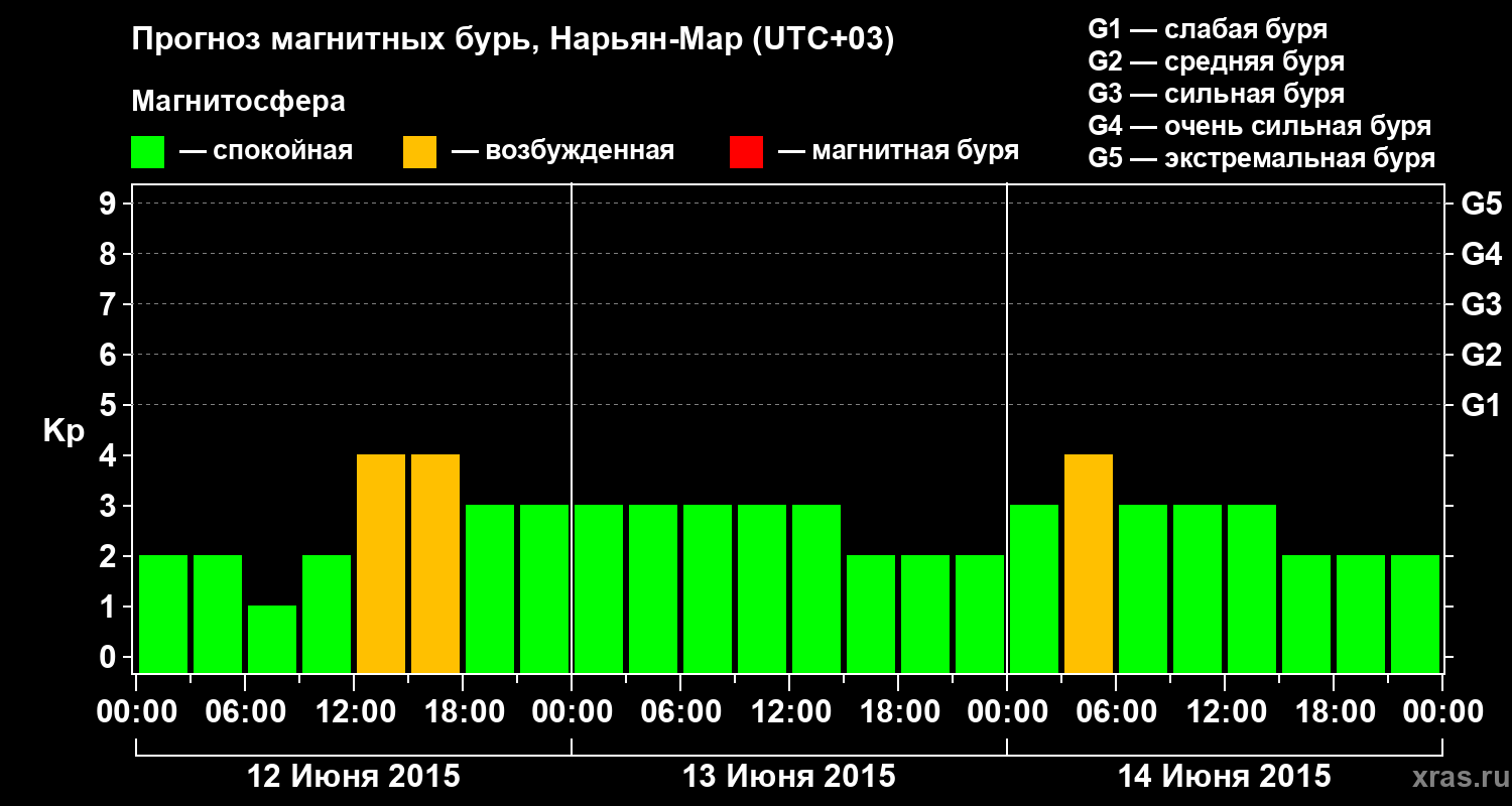 Прогноз магнитных бурь в Нарьян-Маре на 12 июня 2015 года