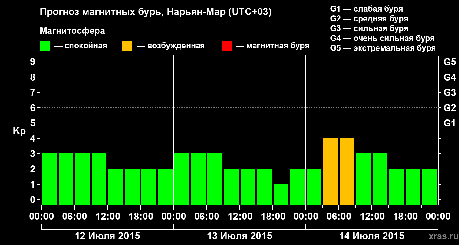 Прогноз магнитных бурь в Нарьян-Маре на 12 июля 2015 года