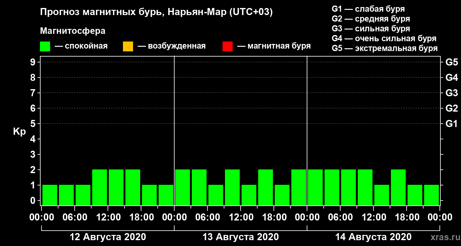 Прогноз магнитных бурь в Нарьян-Маре на 12 августа 2020 года