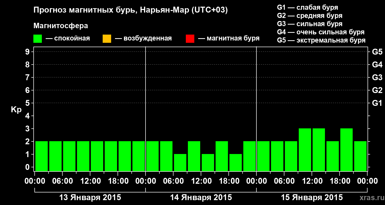 Прогноз магнитных бурь в Нарьян-Маре на 13 января 2015 года