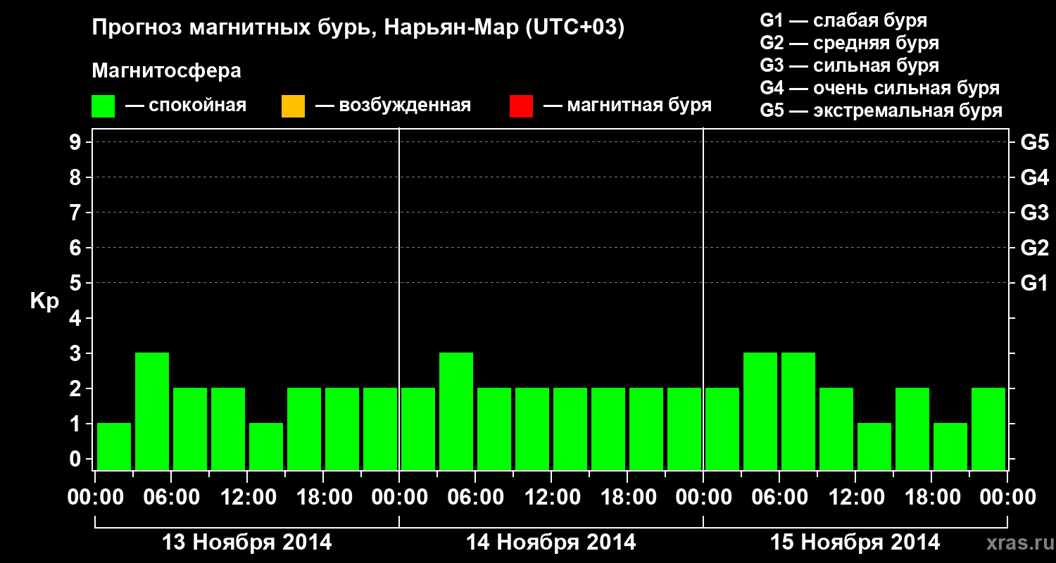 Прогноз магнитных бурь в Нарьян-Маре — 13 ноября 2014 года