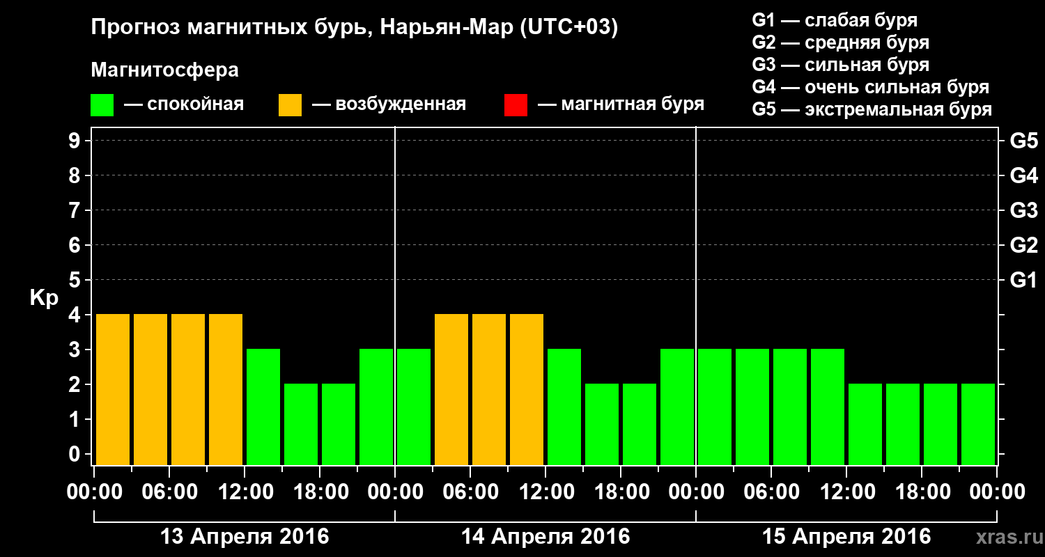 Прогноз магнитных бурь в Нарьян-Маре на 13 апреля 2016 года