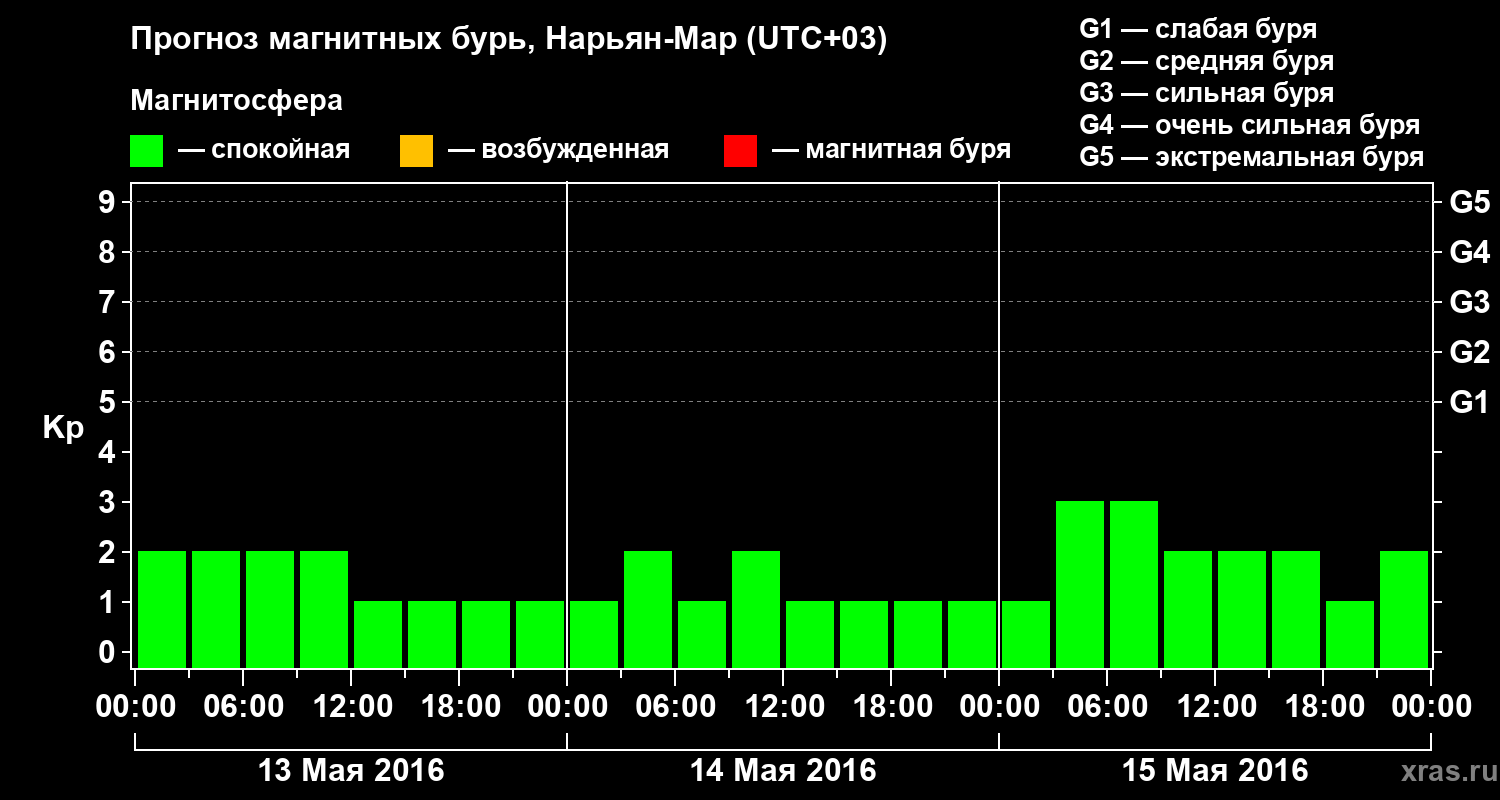 Прогноз магнитных бурь в Нарьян-Маре на 13 мая 2016 года