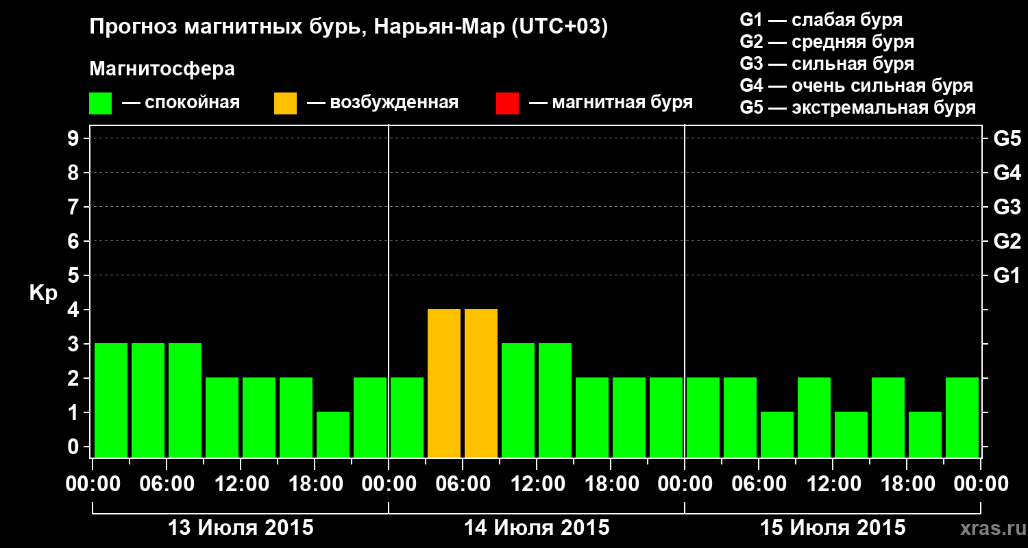 Прогноз магнитных бурь в Нарьян-Маре на 13 июля 2015 года