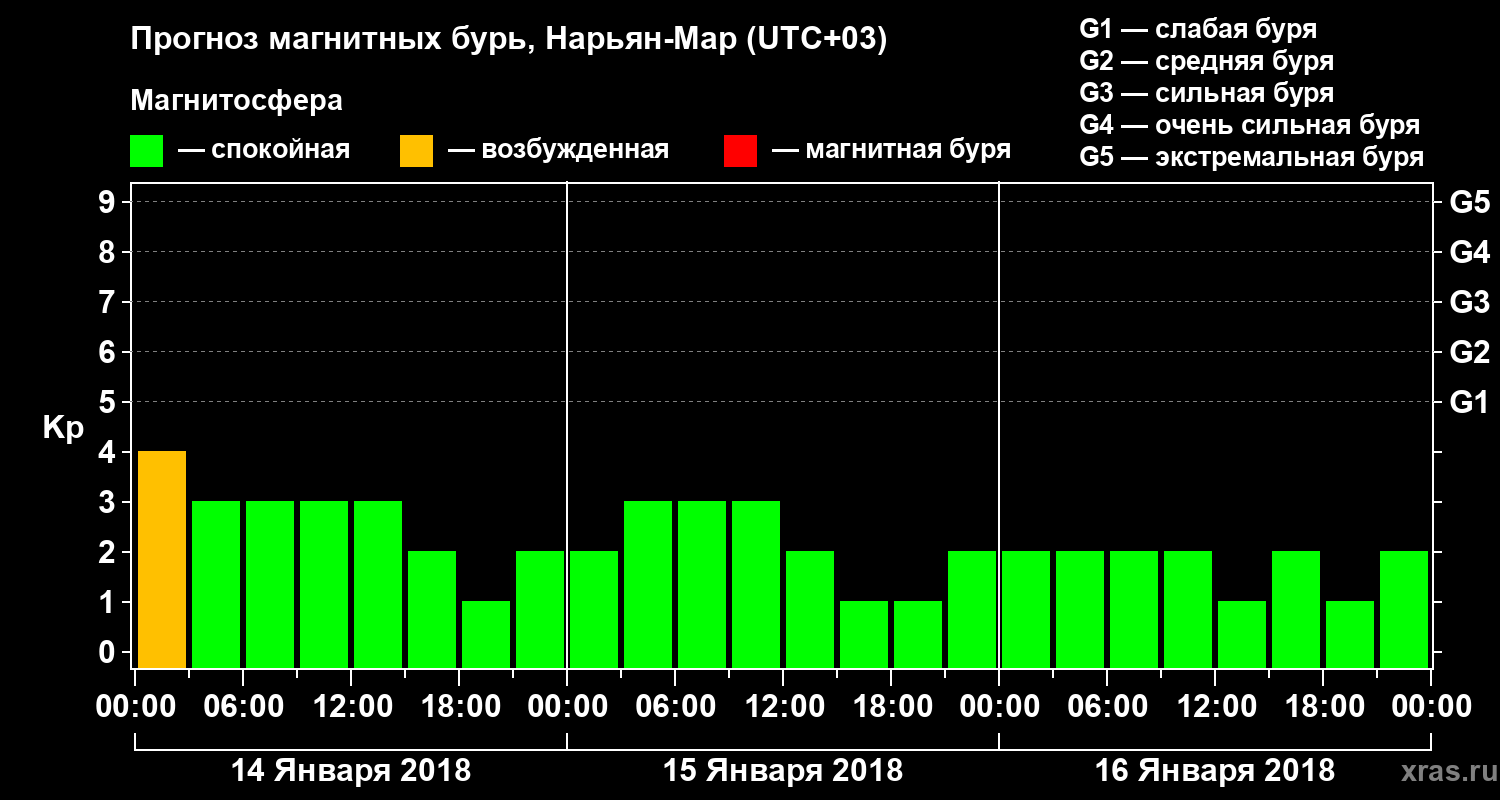Прогноз магнитных бурь в Нарьян-Маре на 14 января 2018 года
