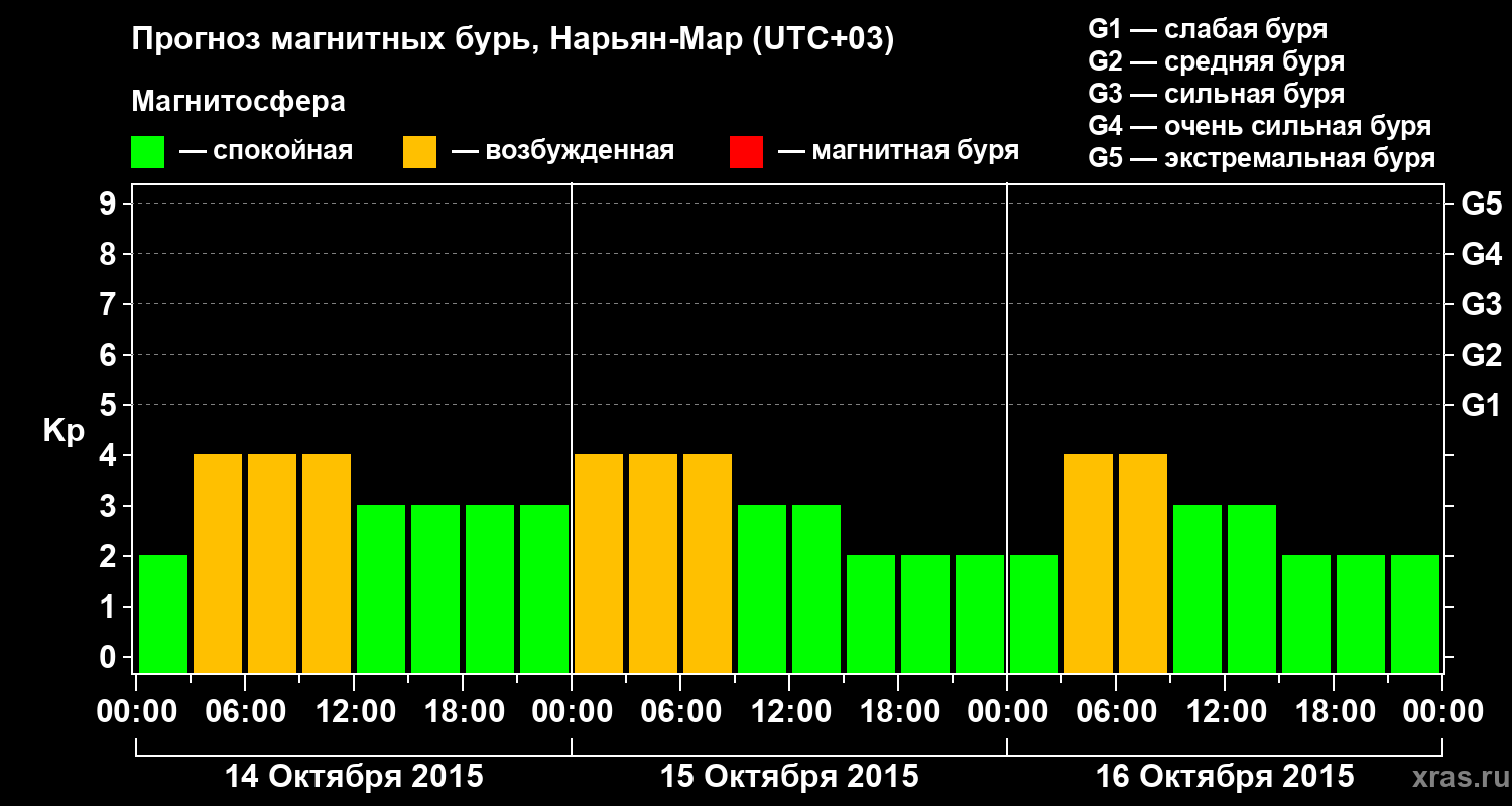 Прогноз магнитных бурь в Нарьян-Маре на 14 октября 2015 года