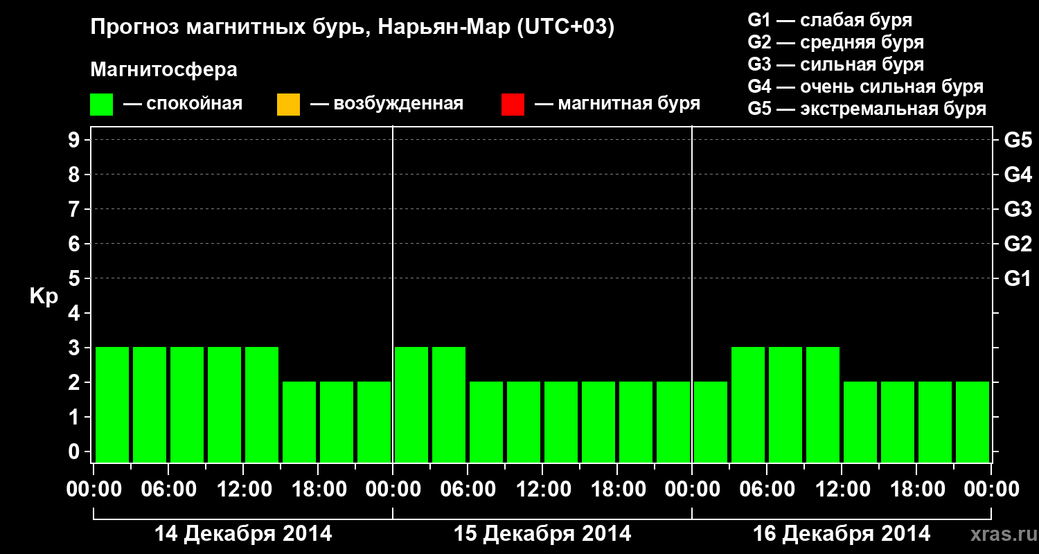 Прогноз магнитных бурь в Нарьян-Маре на 14 декабря 2014 года