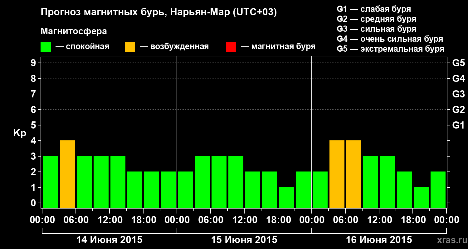 Прогноз магнитных бурь в Нарьян-Маре на 14 июня 2015 года
