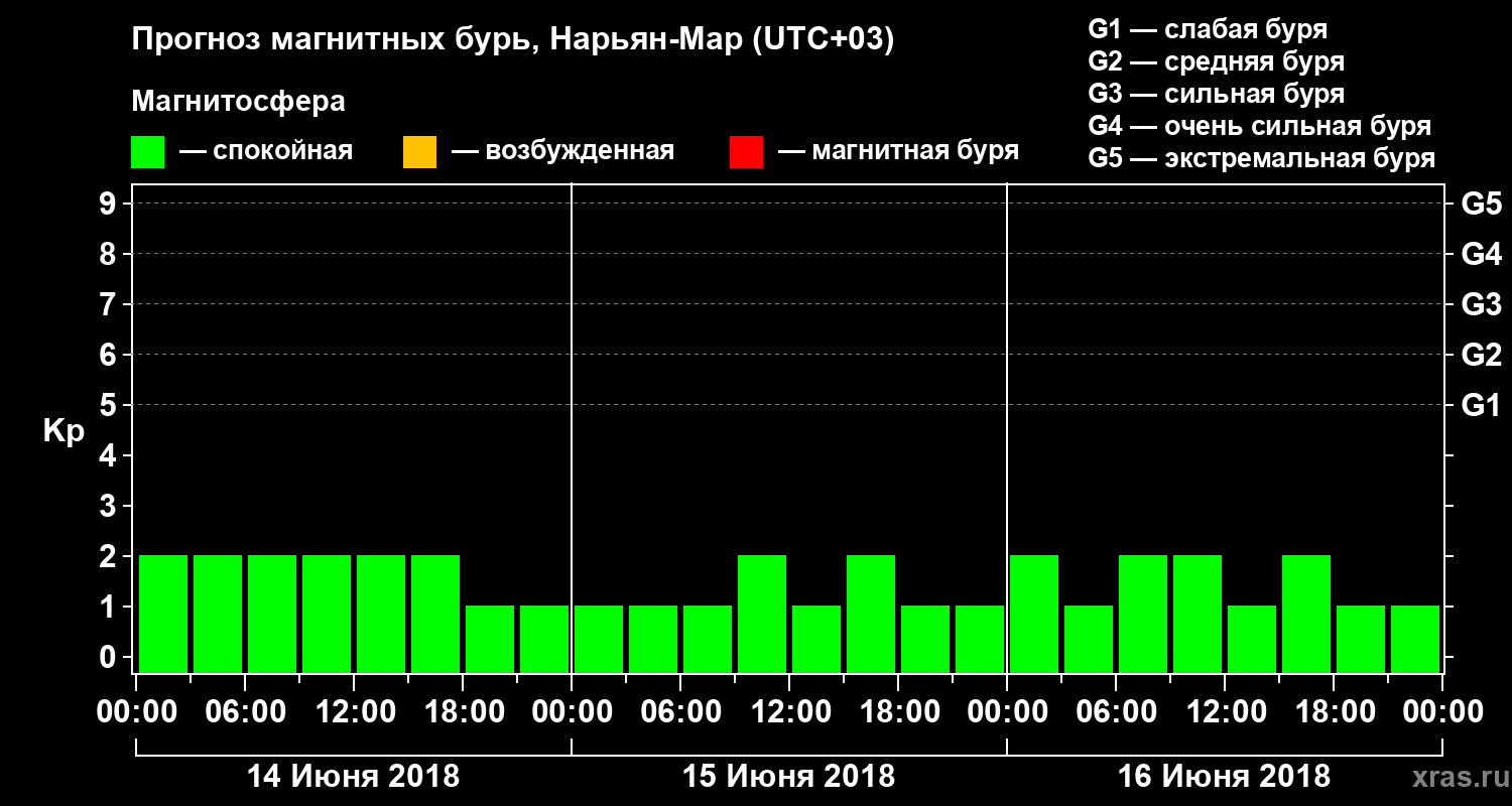 Прогноз магнитных бурь в Нарьян-Маре на 14 июня 2018 года