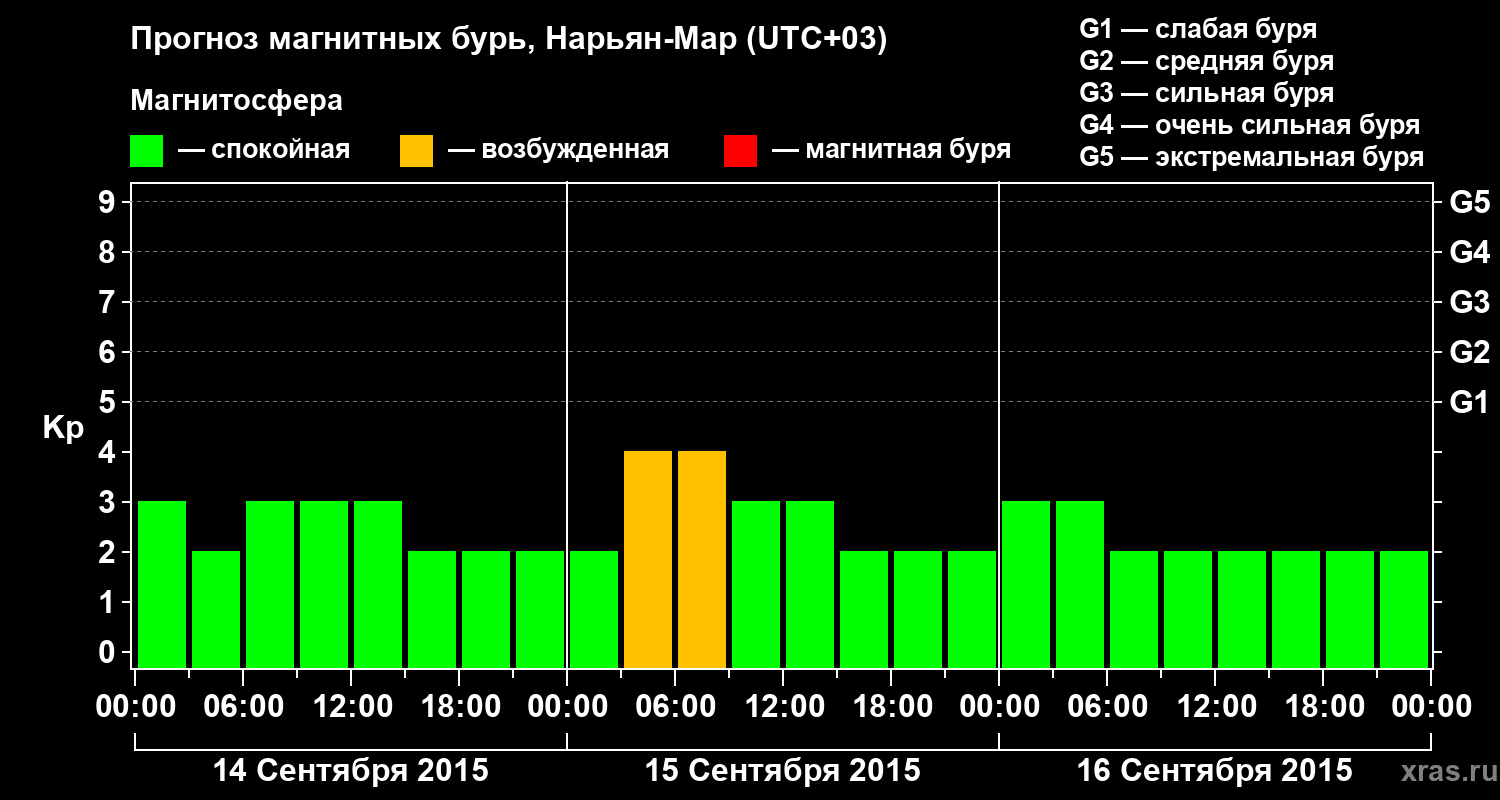 Прогноз магнитных бурь в Нарьян-Маре на 14 сентября 2015 года
