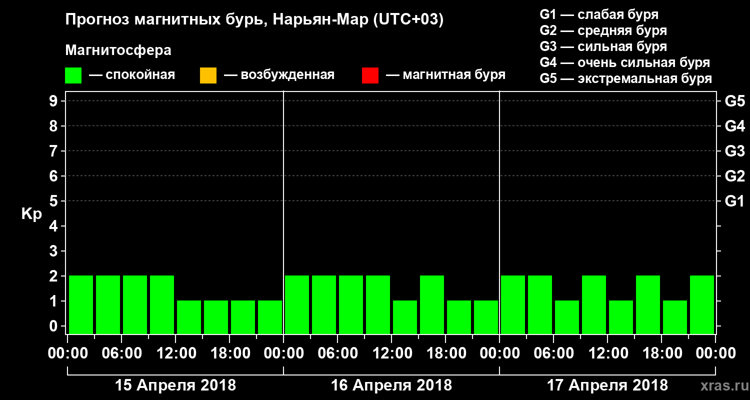 Прогноз магнитных бурь в Нарьян-Маре на 15 апреля 2018 года