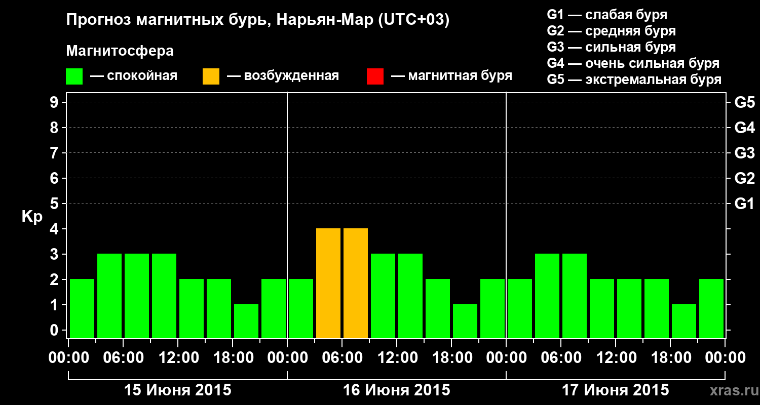 Прогноз магнитных бурь в Нарьян-Маре на 15 июня 2015 года
