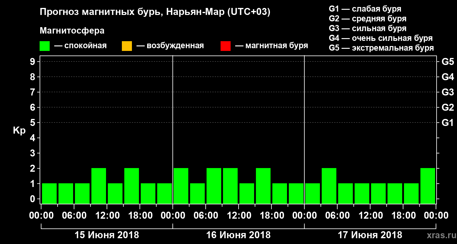 Прогноз магнитных бурь в Нарьян-Маре на 15 июня 2018 года