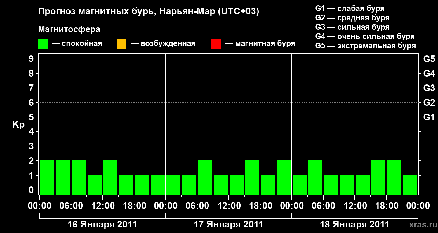 Прогноз магнитных бурь в Нарьян-Маре на 16 января 2011 года
