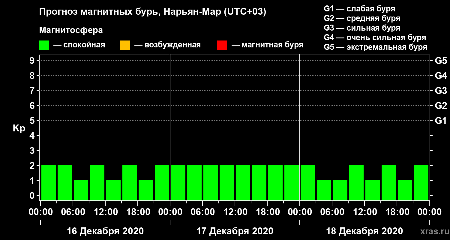 Прогноз магнитных бурь в Нарьян-Маре на 16 декабря 2020 года