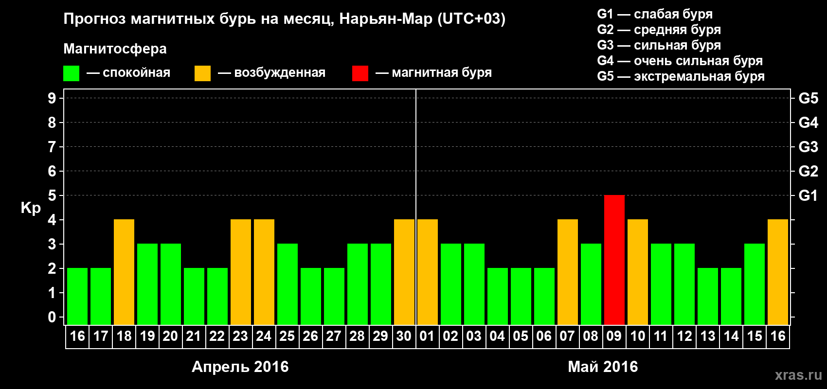 Прогноз магнитных бурь в Нарьян-Маре на 16 апреля 2016 года