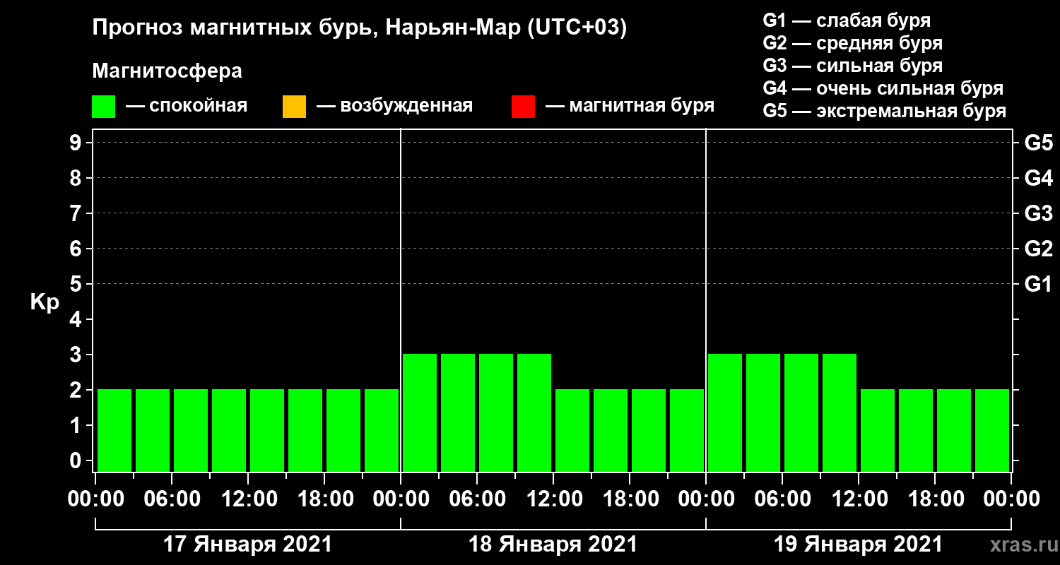 Прогноз магнитных бурь в Нарьян-Маре на 17 января 2021 года