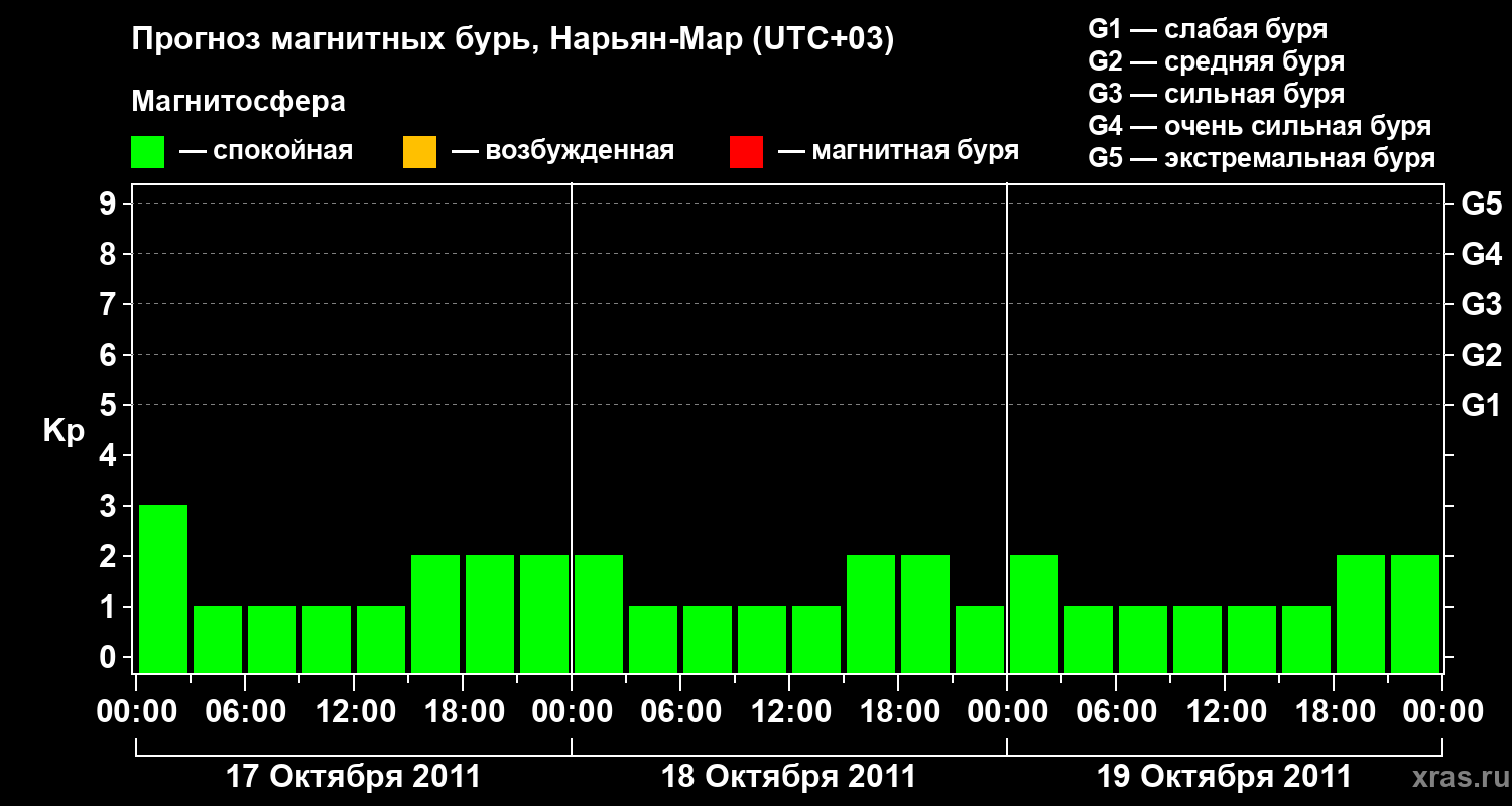 Прогноз магнитных бурь в Нарьян-Маре на 17 октября 2011 года