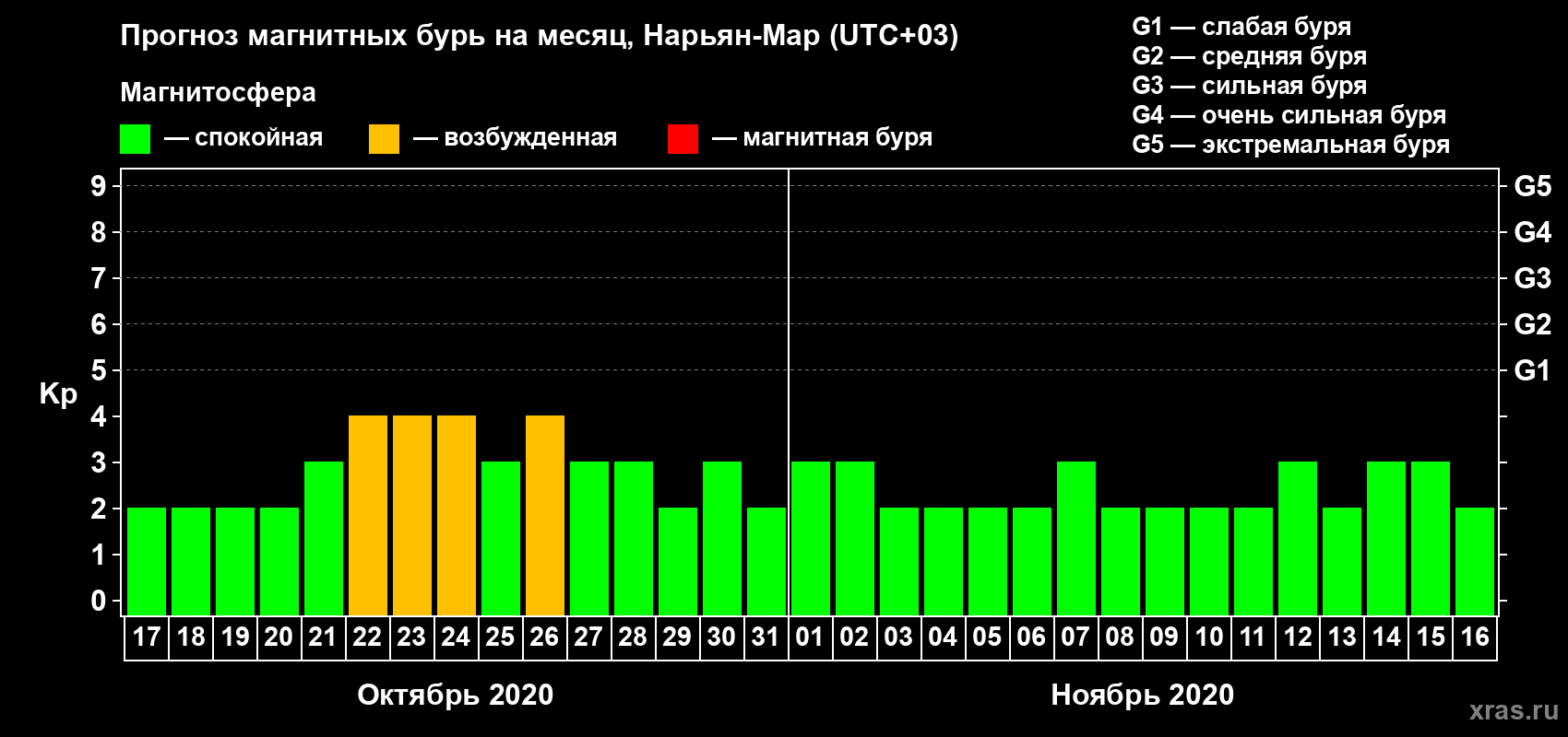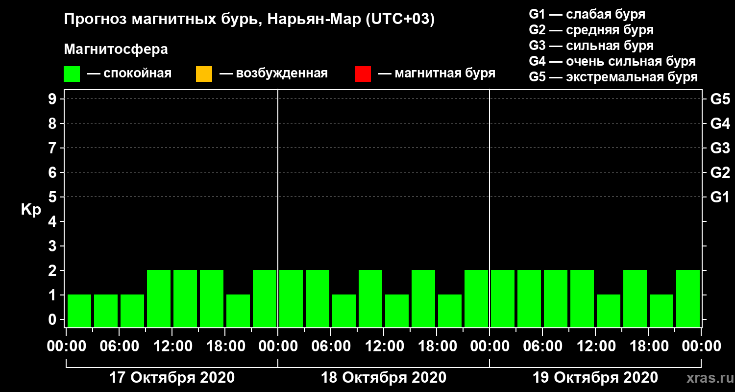 Прогноз магнитных бурь в Нарьян-Маре на 17 октября 2020 года