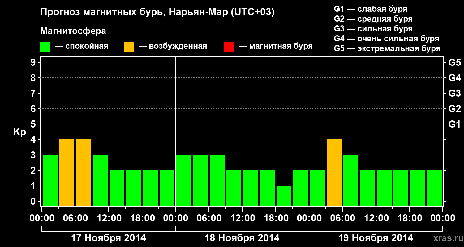 Прогноз магнитных бурь в Нарьян-Маре — 17 ноября 2014 года