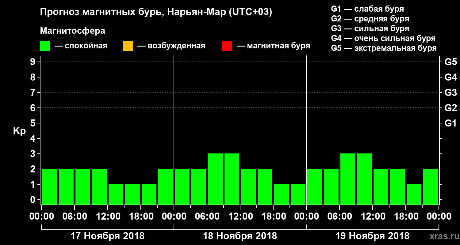 Прогноз магнитных бурь в Нарьян-Маре на 17 ноября 2018 года