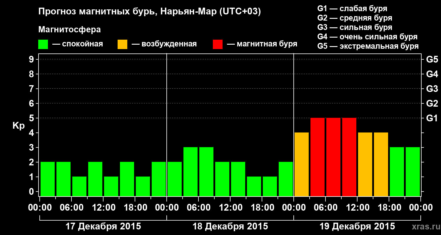 Прогноз магнитных бурь в Нарьян-Маре на 17 декабря 2015 года
