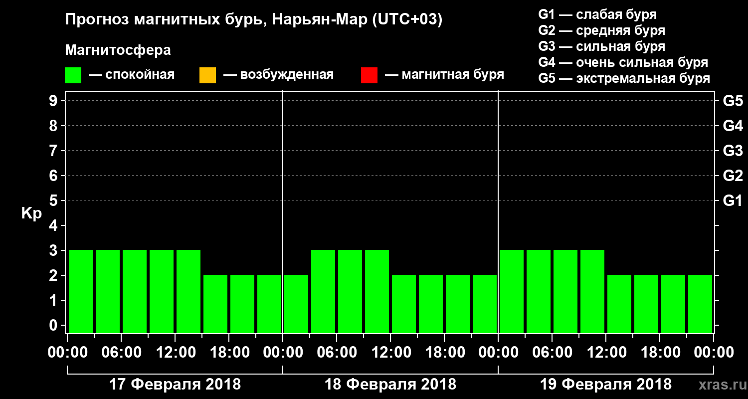 Прогноз магнитных бурь в Нарьян-Маре на 17 февраля 2018 года