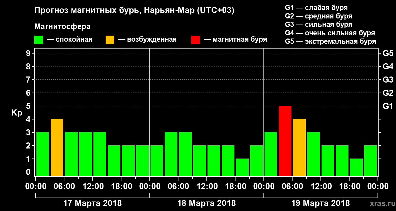 Прогноз магнитных бурь в Нарьян-Маре на 17 марта 2018 года