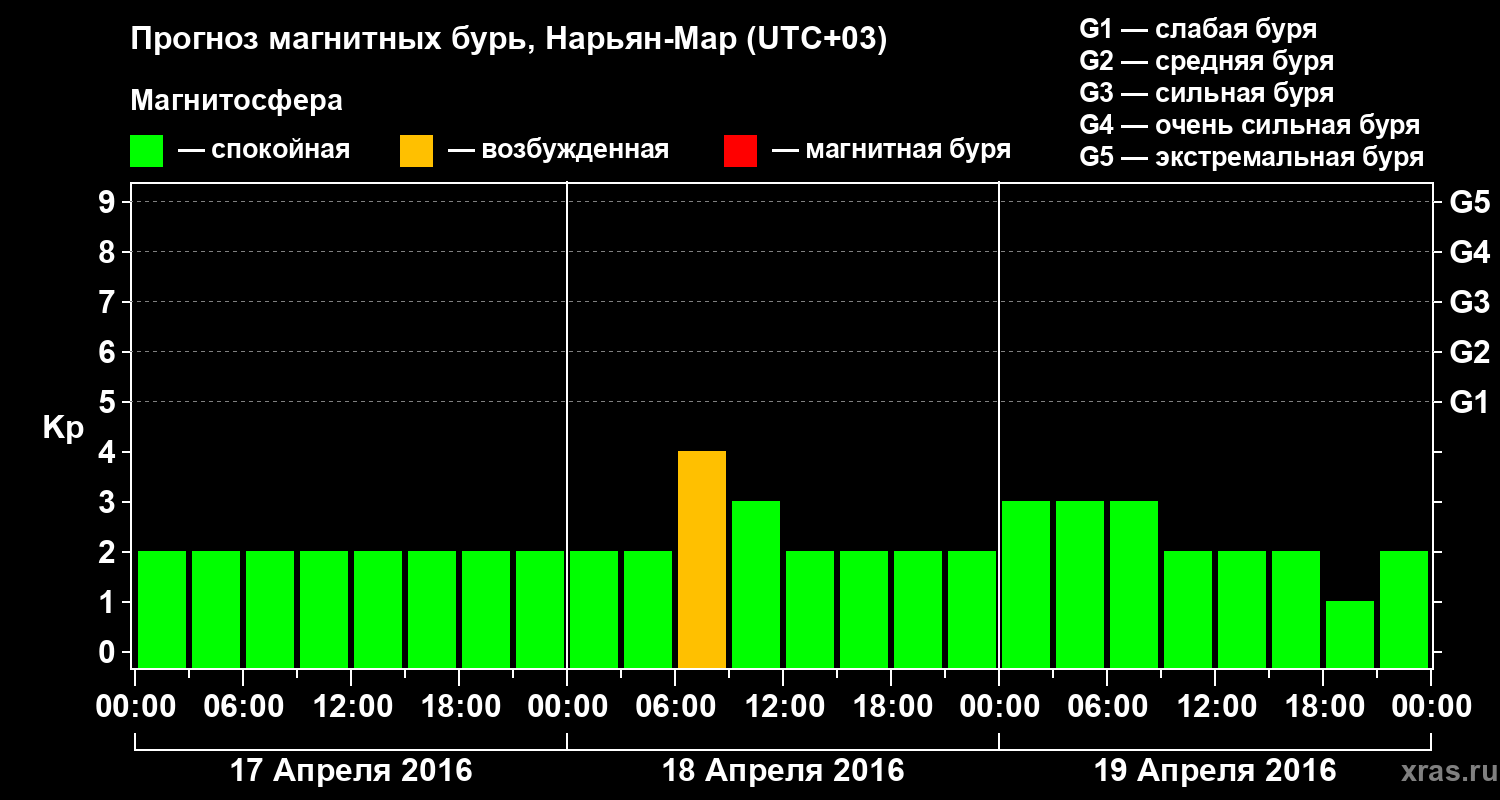 Прогноз магнитных бурь в Нарьян-Маре на 17 апреля 2016 года