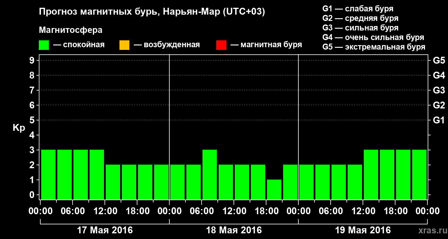 Прогноз магнитных бурь в Нарьян-Маре на 17 мая 2016 года