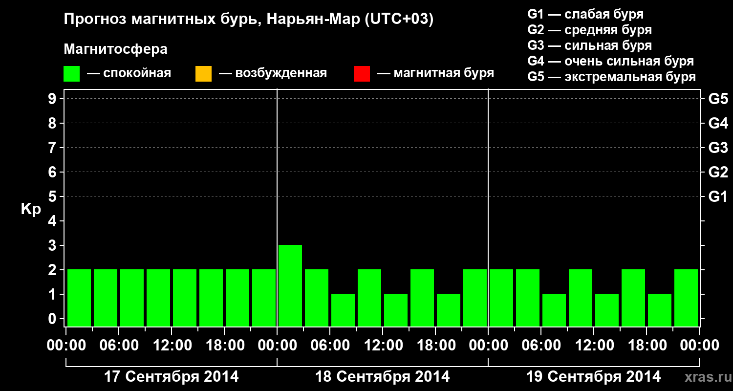 Прогноз магнитных бурь в Нарьян-Маре на 17 сентября 2014 года