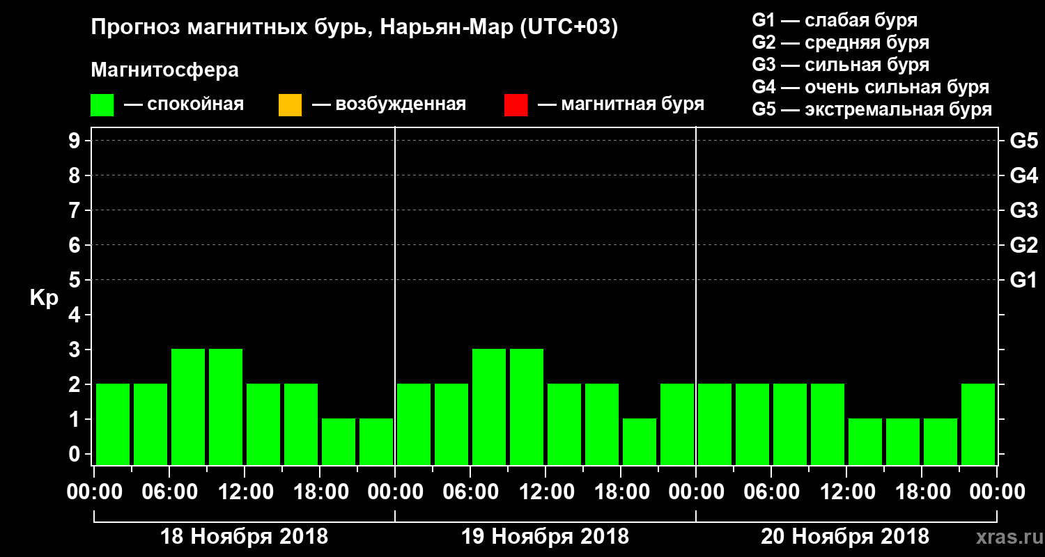 Прогноз магнитных бурь в Нарьян-Маре на 18 ноября 2018 года