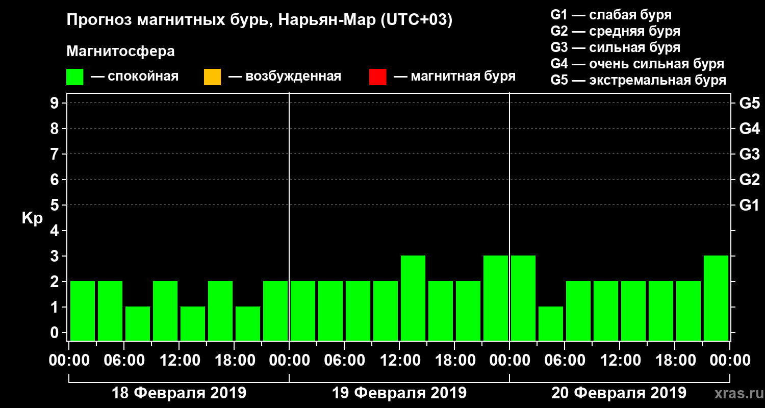 Прогноз магнитных бурь в Нарьян-Маре на 18 февраля 2019 года