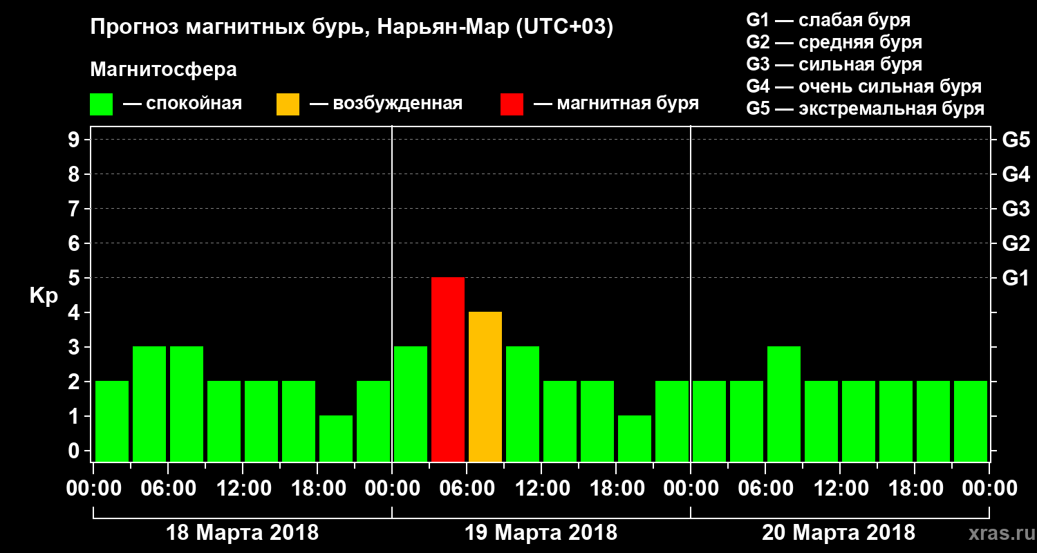 Прогноз магнитных бурь в Нарьян-Маре на 18 марта 2018 года