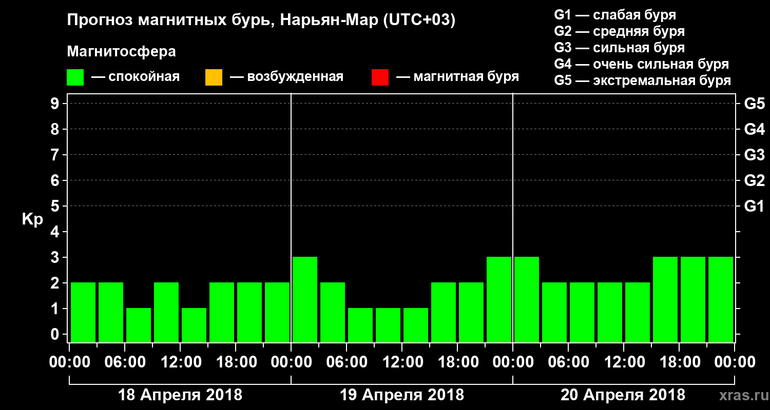 Прогноз магнитных бурь в Нарьян-Маре на 18 апреля 2018 года