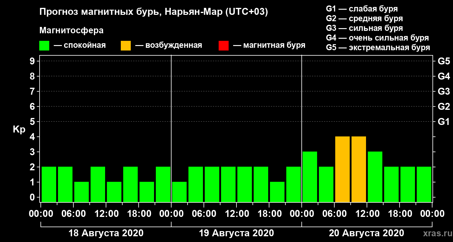 Прогноз магнитных бурь в Нарьян-Маре на 18 августа 2020 года