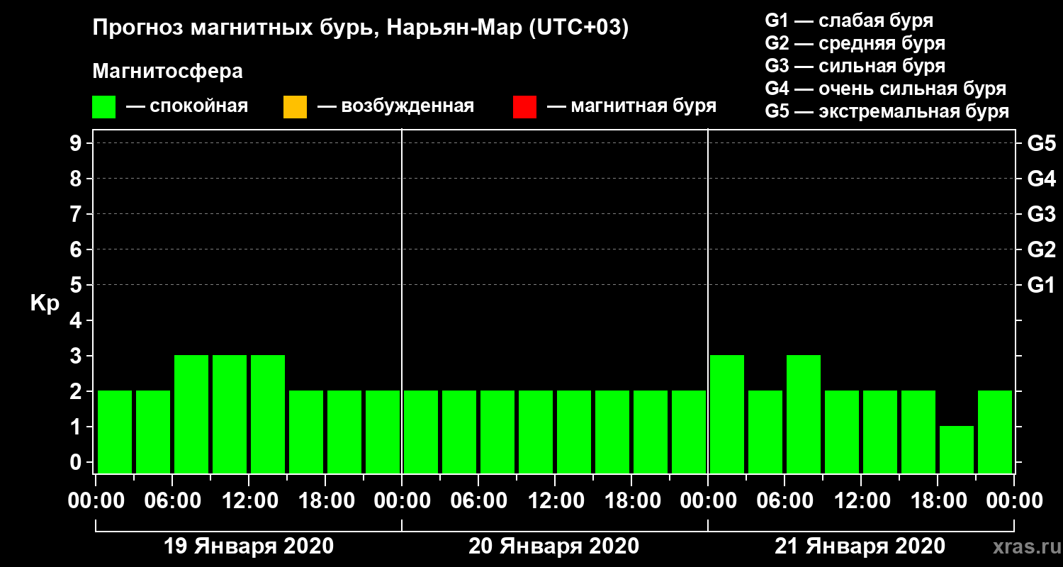 Прогноз магнитных бурь в Нарьян-Маре на 19 января 2020 года
