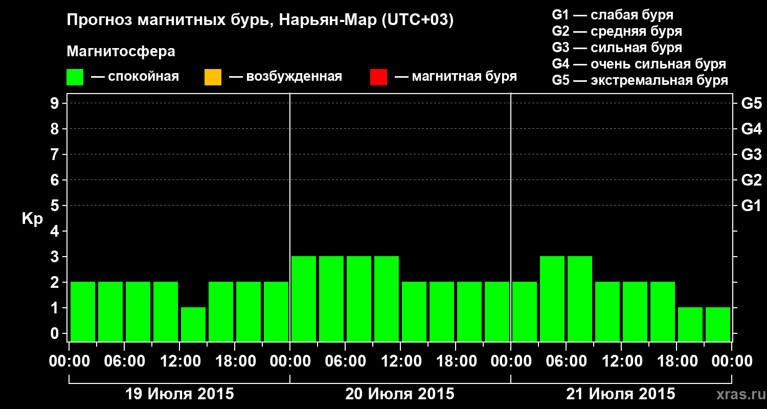 Прогноз магнитных бурь в Нарьян-Маре на 19 июля 2015 года