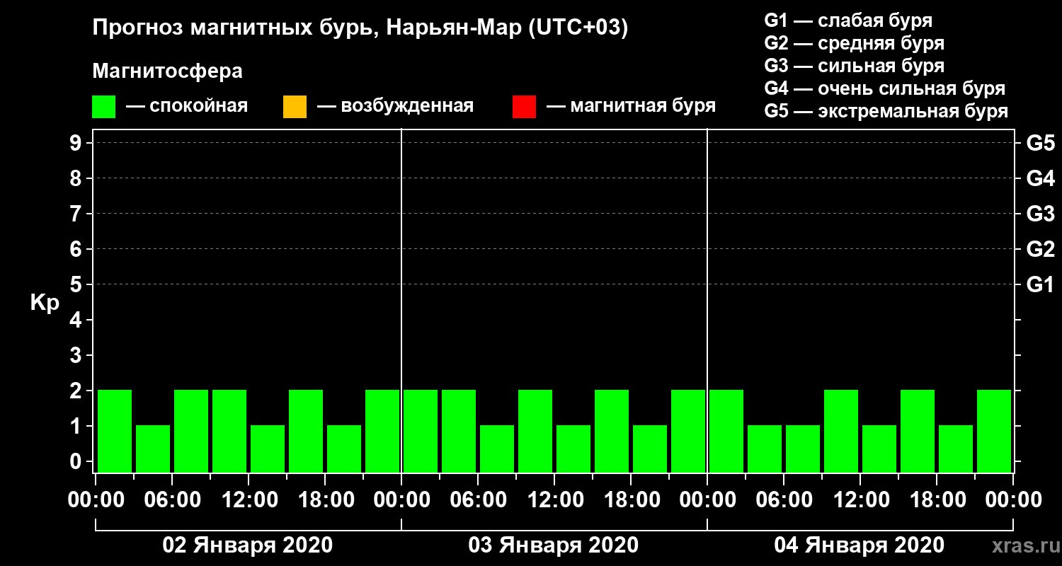 Прогноз магнитных бурь в Нарьян-Маре — 2 января 2020 года