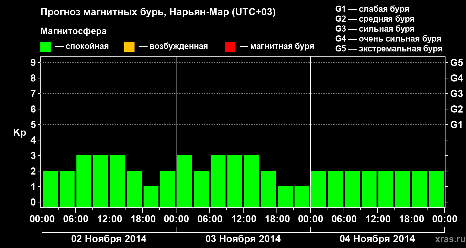 Прогноз магнитных бурь в Нарьян-Маре — 2 ноября 2014 года