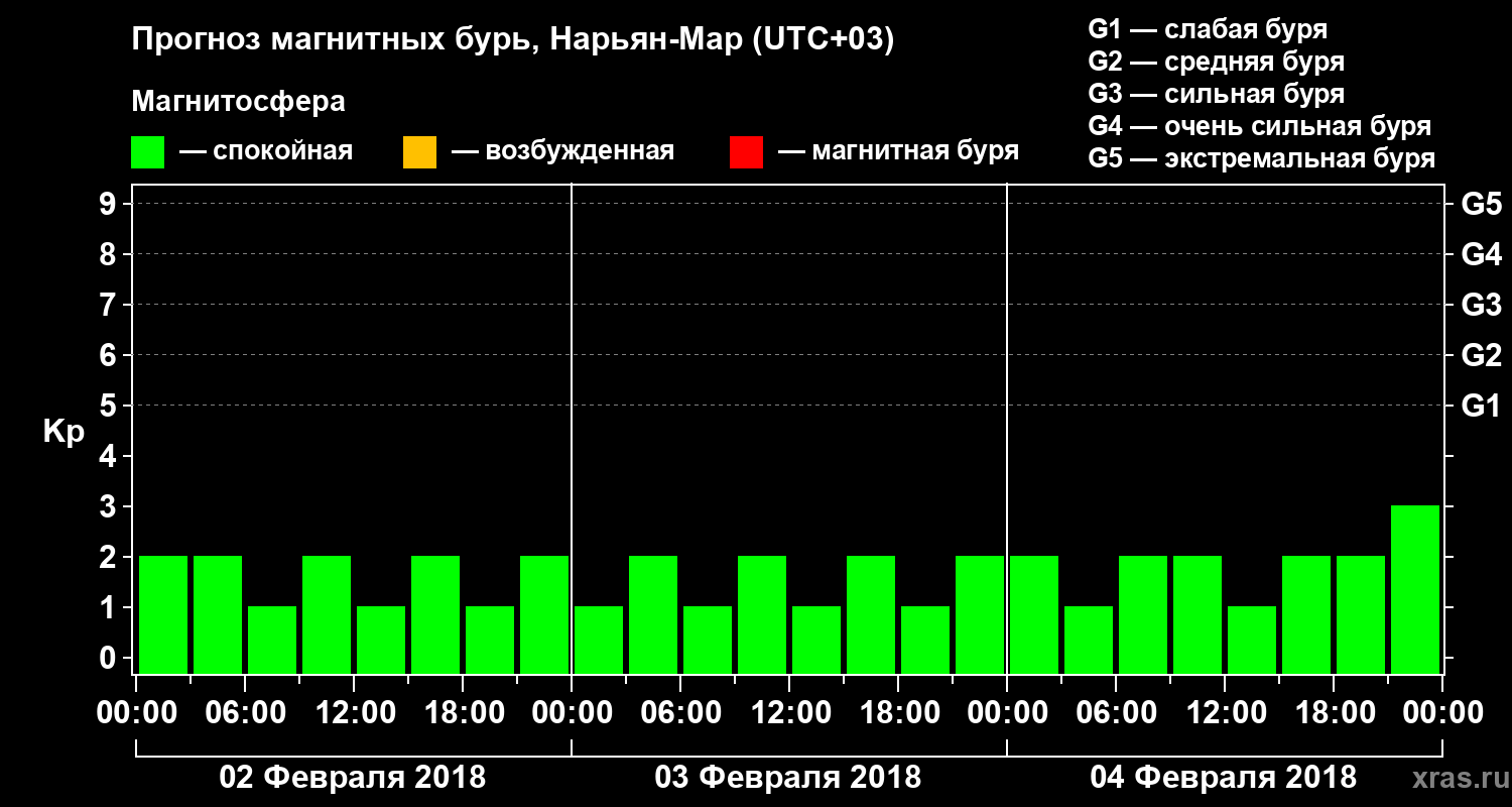 Прогноз магнитных бурь в Нарьян-Маре — 2 февраля 2018 года