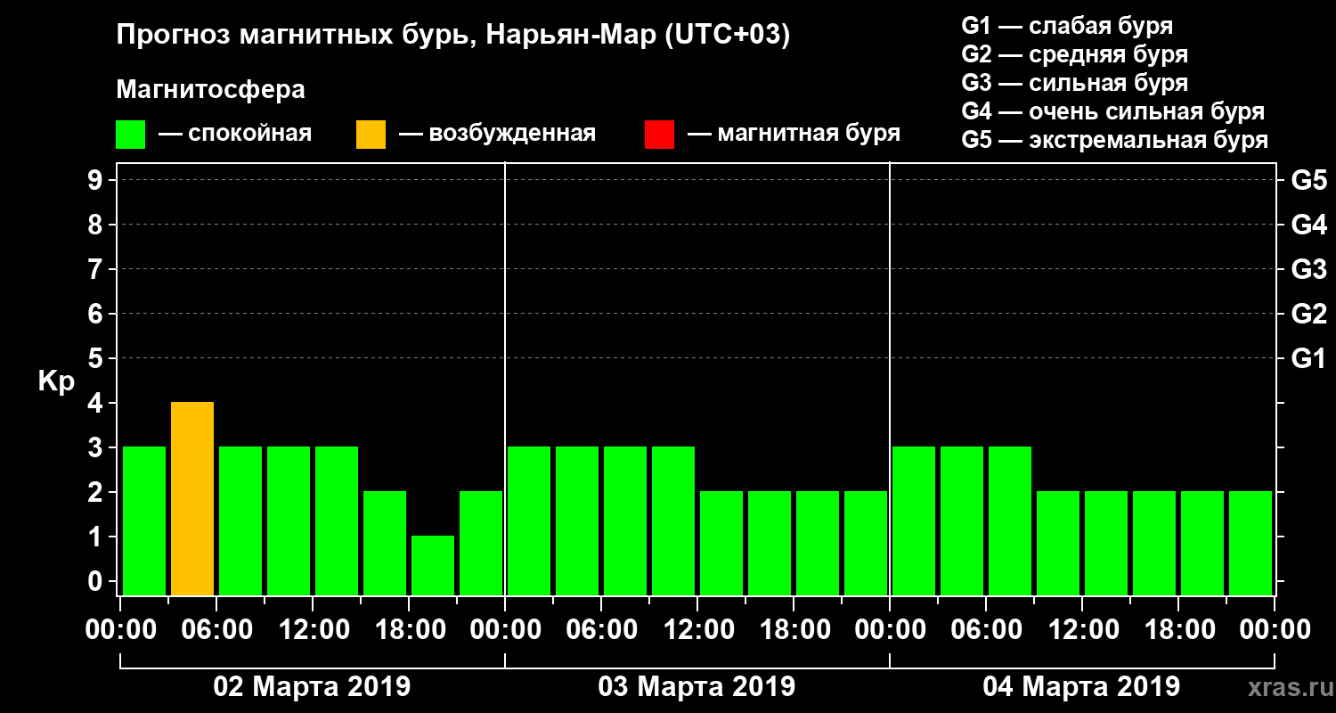 Прогноз магнитных бурь в Нарьян-Маре на 2 марта 2019 года